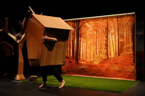 « … Dans ma cabane » est un spectacle qui invite à l’exploration et à la découverte métaphorique du passage de l’intimité du nid maternel à la découverte du vaste monde, avec tout ce qu’il a d’inquiétant et d’hostile parfois pour un tout petit.